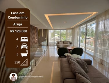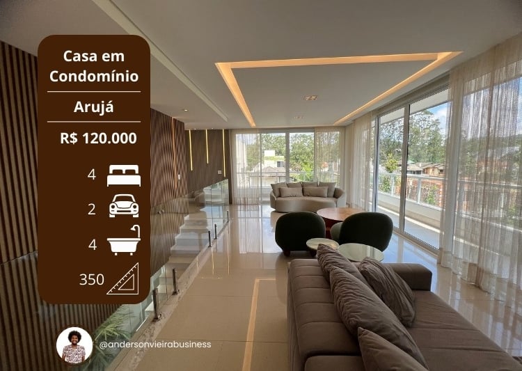 Casa à venda em condomínio fechado em Arujá com 4 dormitórios (2 suítes e closet), sala com cozinha integrada, sala de TV, piscina privativa e 4 vagas de garagem. Mobiliada, moderna e pronta para morar. Condomínio completo com academia, quadras e segurança 24h. Documentação em ordem e aceita permuta. Agende sua visita!