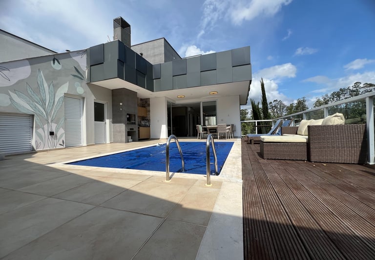 Casa à venda com 4 dormitórios (2 suítes), rooftop com churrasqueira, piscina aquecida e elevador interno. Frente para área de reserva, com vista definitiva e privacidade total. São 350m² em condomínio completo, com quadras, salões de festa, lago, chácara, academia ao ar livre e muito mais. Localização privilegiada e documentação em ordem. Agende sua visita!